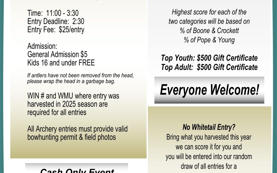 2025 Antler Measuring Day – Saturday, December 13th, 11:00 a.m. – 3:30 p.m. at the St. Paul Centennial Senior Citizens Centre Measuring Day Results Measuring Day Results